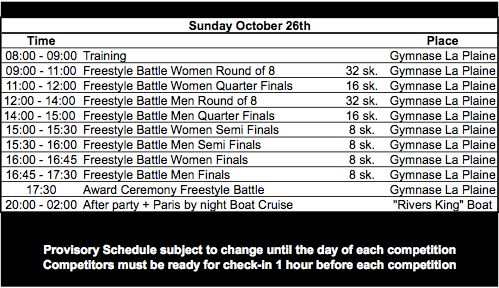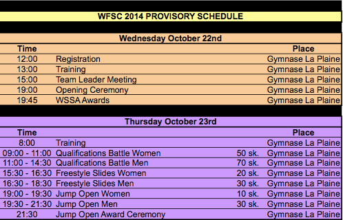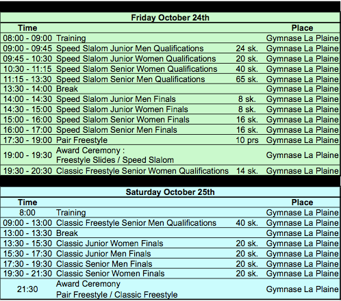 Provisory Schedule subject to change until the day of each competition