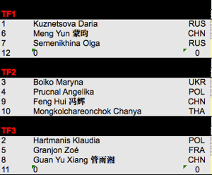 In the Women's category, the competition will start with thirds of finals : Two groups of 3 and one group of 4...